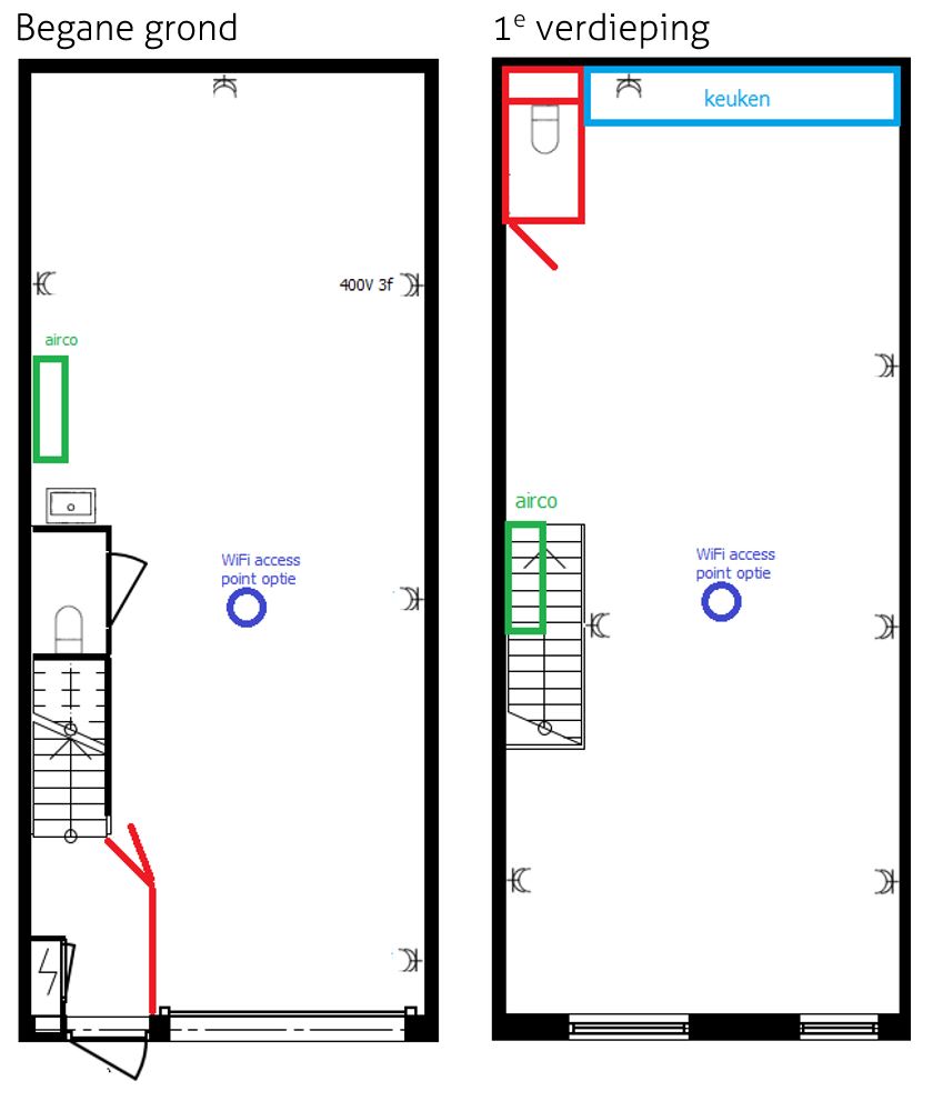 Beide verdiepingen zijn voorzien van een 6kW airco t.b.v. verwarming en verkoeling.
